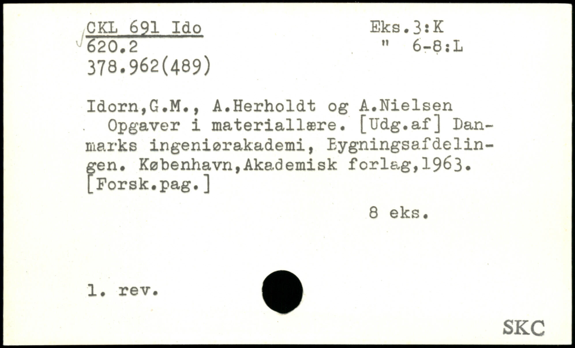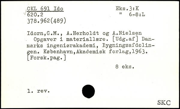 Idorn,G.M., A.Herholdt og A.Nielsen Opgaver i materiallære. [Udg.af] Danmarks ingeniørakademi, Lygningsafdelingen.