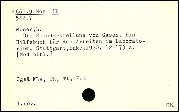 Die Reindarstellung von Gasen. Ein Hilfsbuch für das Arbeiten im Laboratorium.