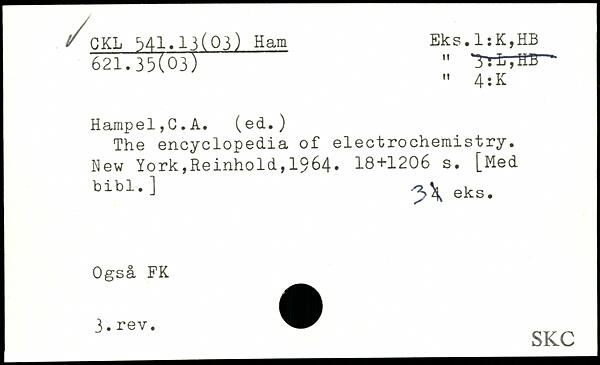 The encyclopedia of electrochemistry.