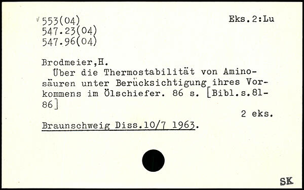 Über die Thermostabilität von Aminosäuren unter Berücksichtigung ihres Vorkommens im Ölschiefer.
