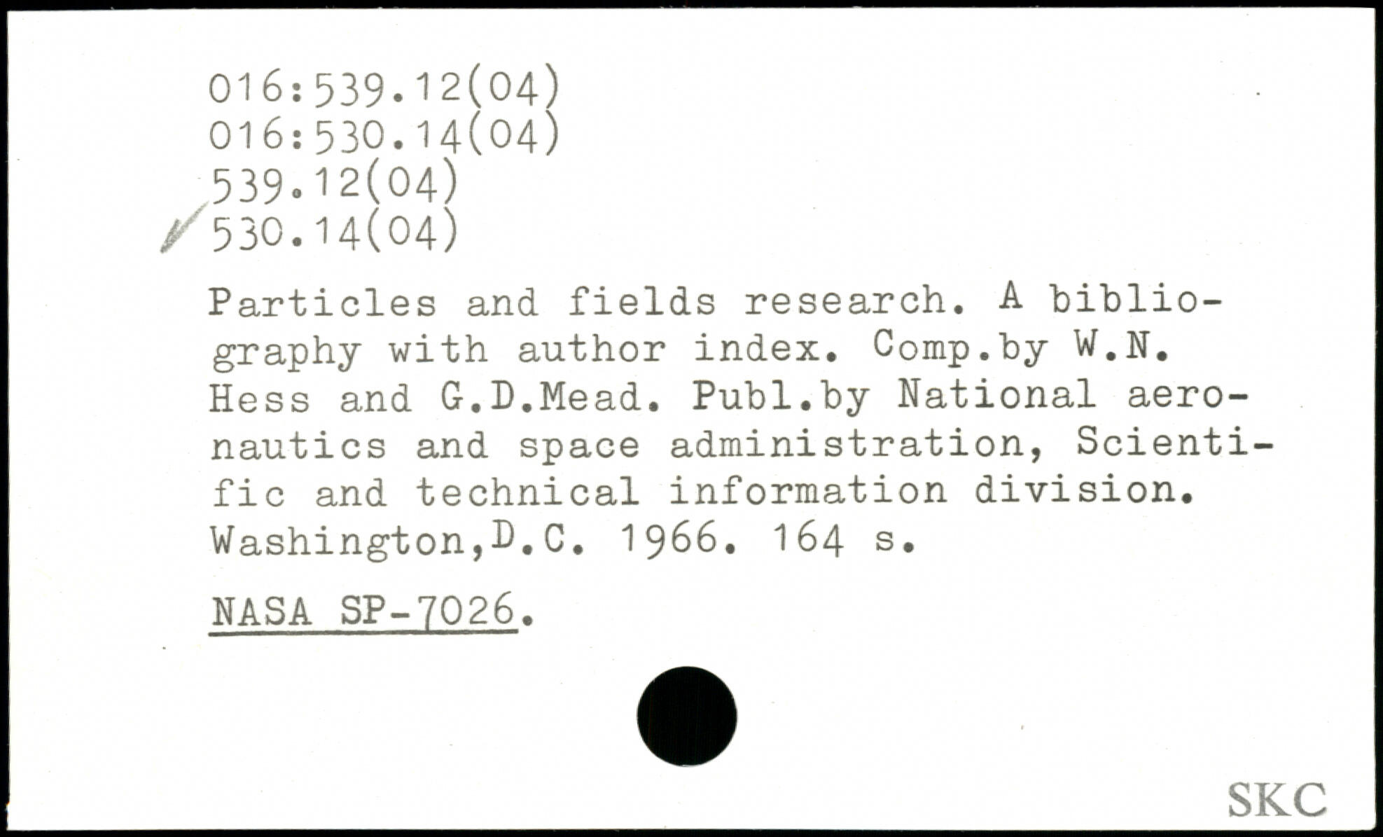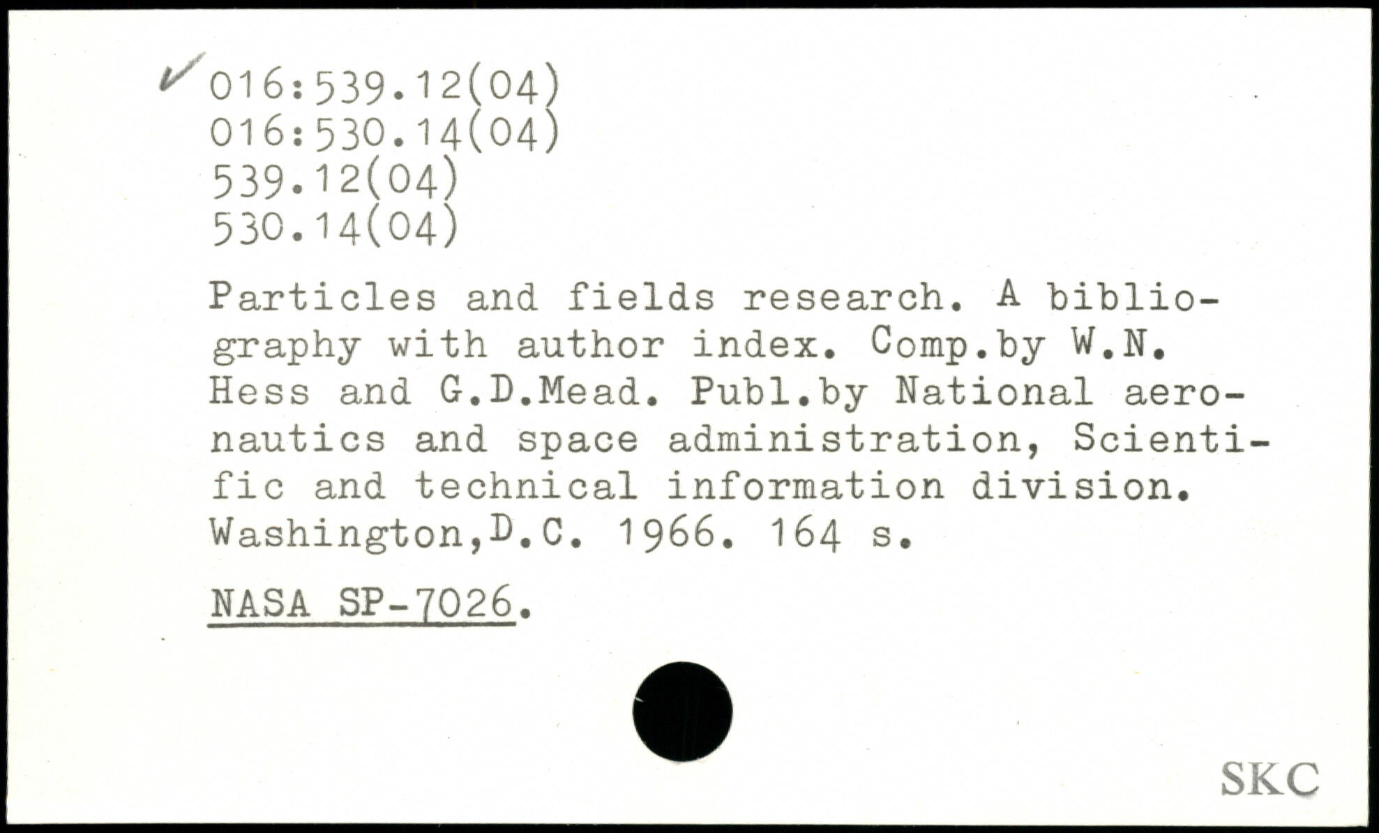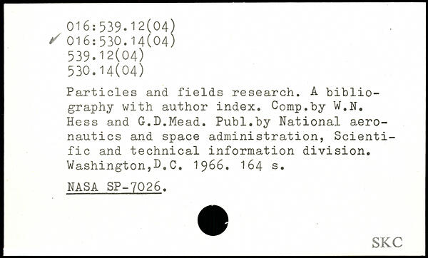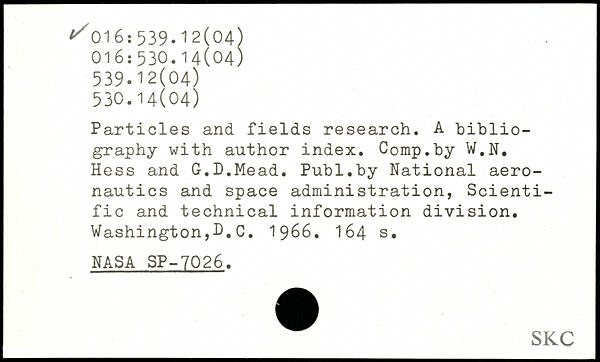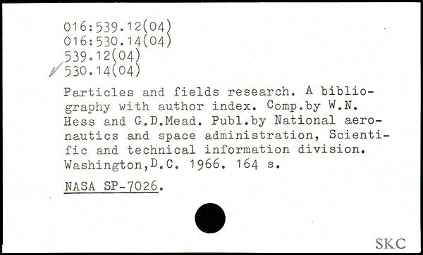 Particles and fields research. A bibliography with author index. Comp.by W.N. Hess and G.D.Mead.