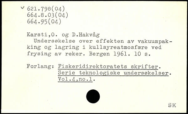 Undersøkelse over effekten av vakuumpak-king og lagring i kullsyreatmosfære ved frysing av reker.