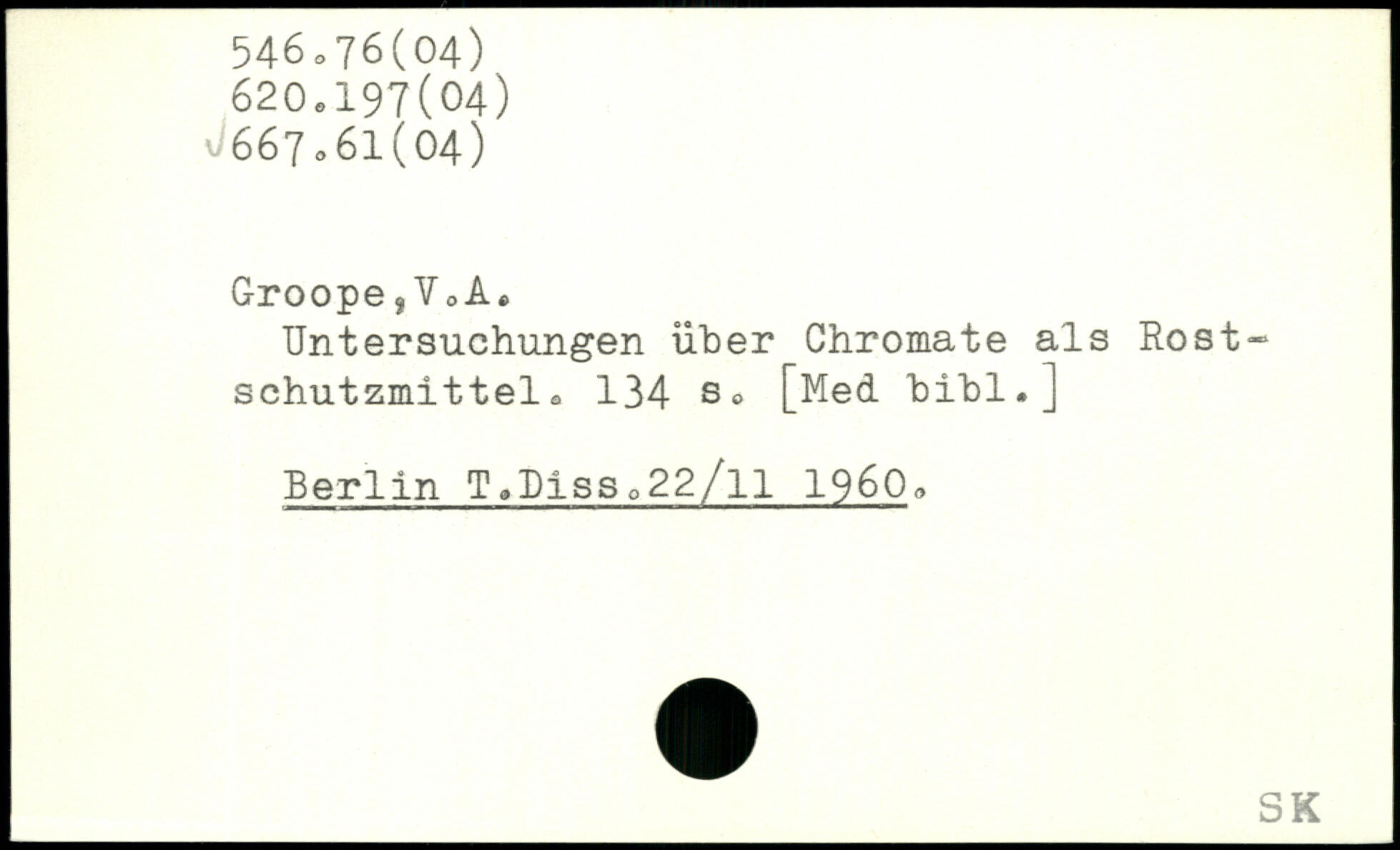 Untersuchungen über Chromate als Rostschutzmittel