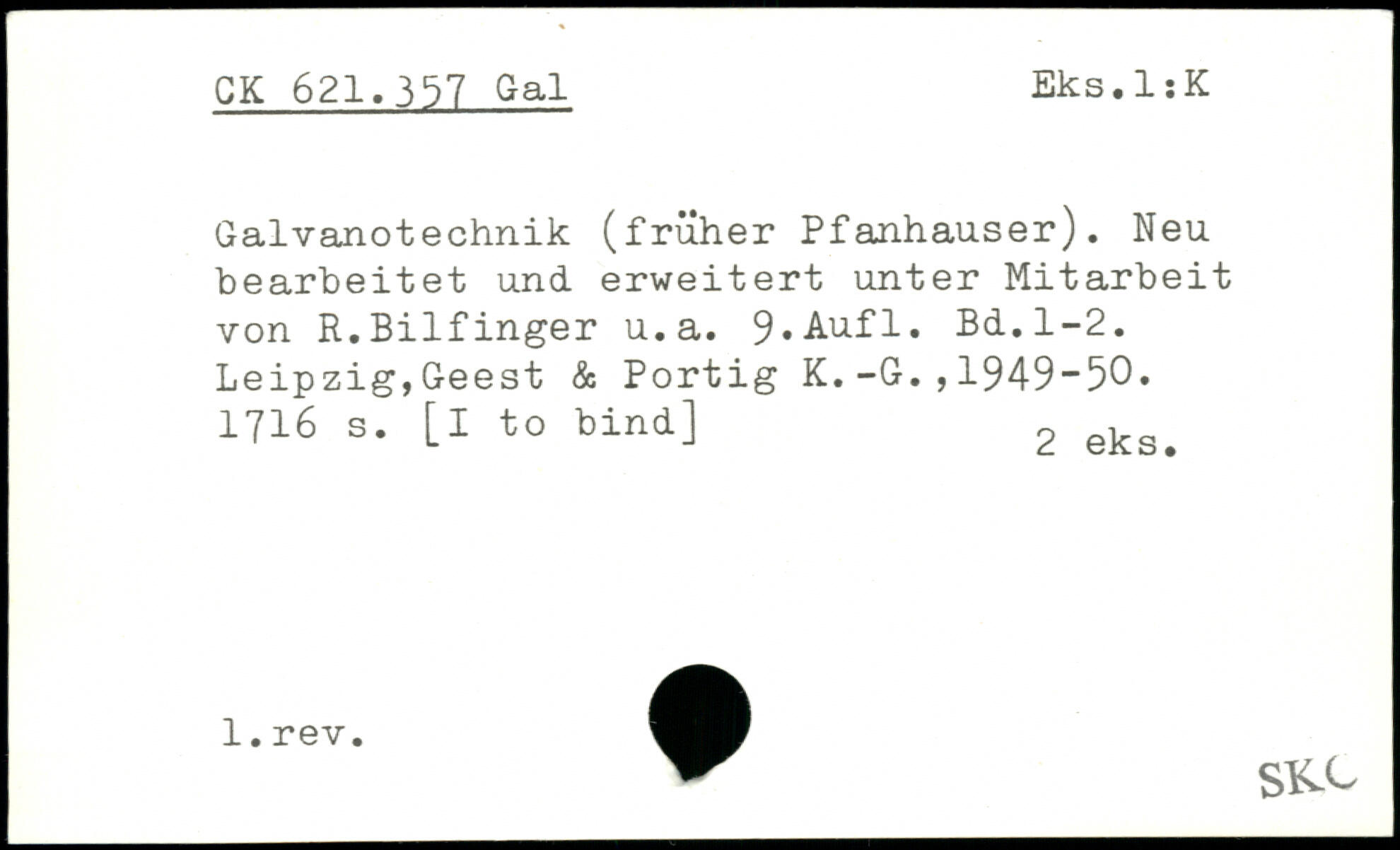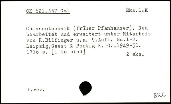 Galvanotechnik (früher Pfanhauser). Neu bearbeitet und erweitert unter Mitarbeit von R.Bilfinger u.a.