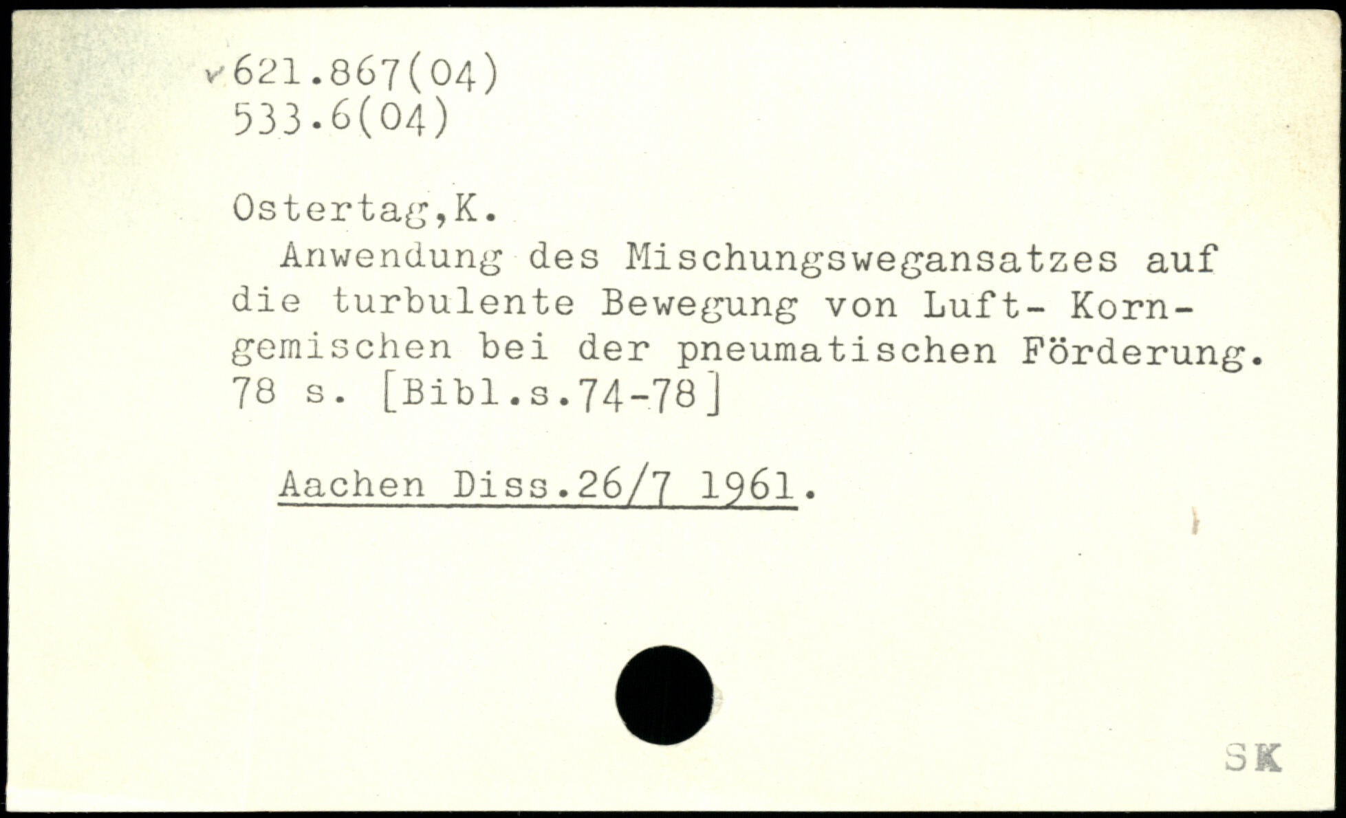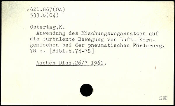 Anwendung des Mischungswegansatzes auf die turbulente Bewegung von Luft- Korn-gemischen bei der pneumatischen Förderung.
