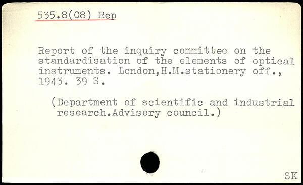 Report of the inquiry committee on the standardisation of the elements of optical instruments. London,H.M.stationery off., 1943.