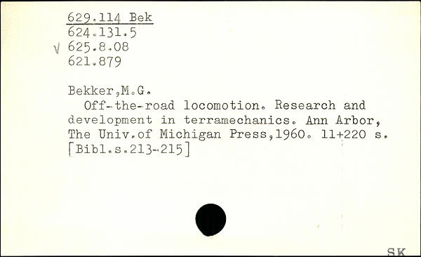 Bekker?MoG, Off-the-road locomotion. Research and development in terramechanics. Ann Arbor, The Univ.of Michigan Press,1960.