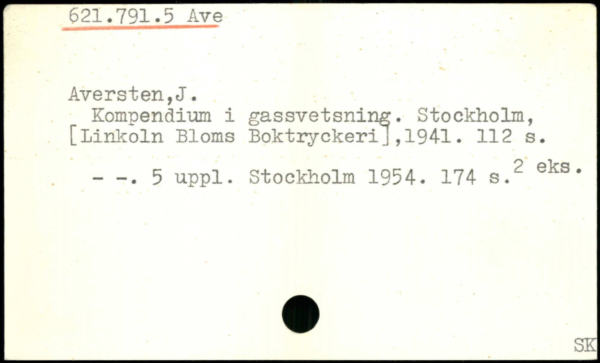 Kompendium i gassvetsning. Stockholm, [Linkoln Bloms Boktryckeri],1941.