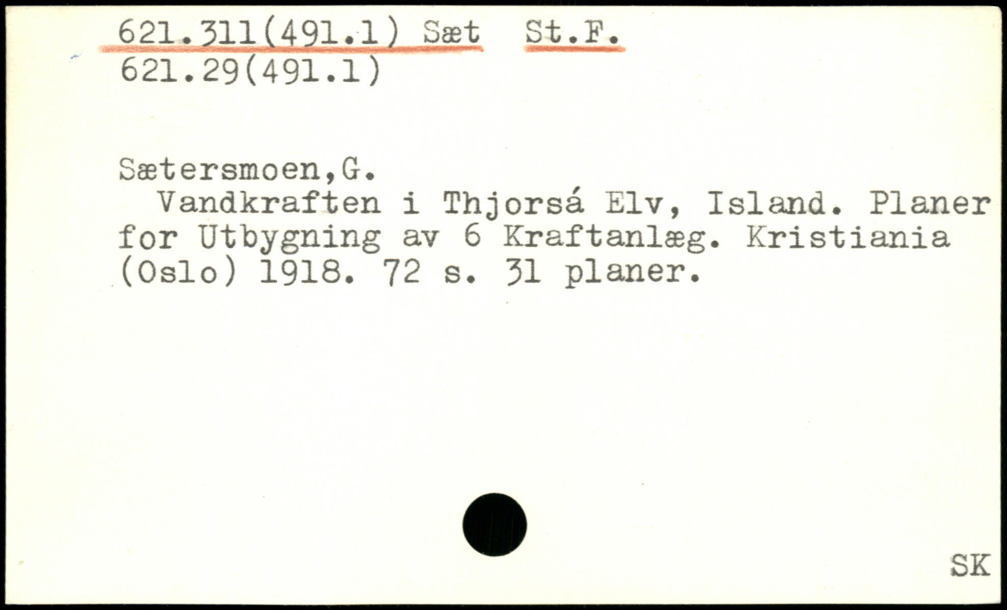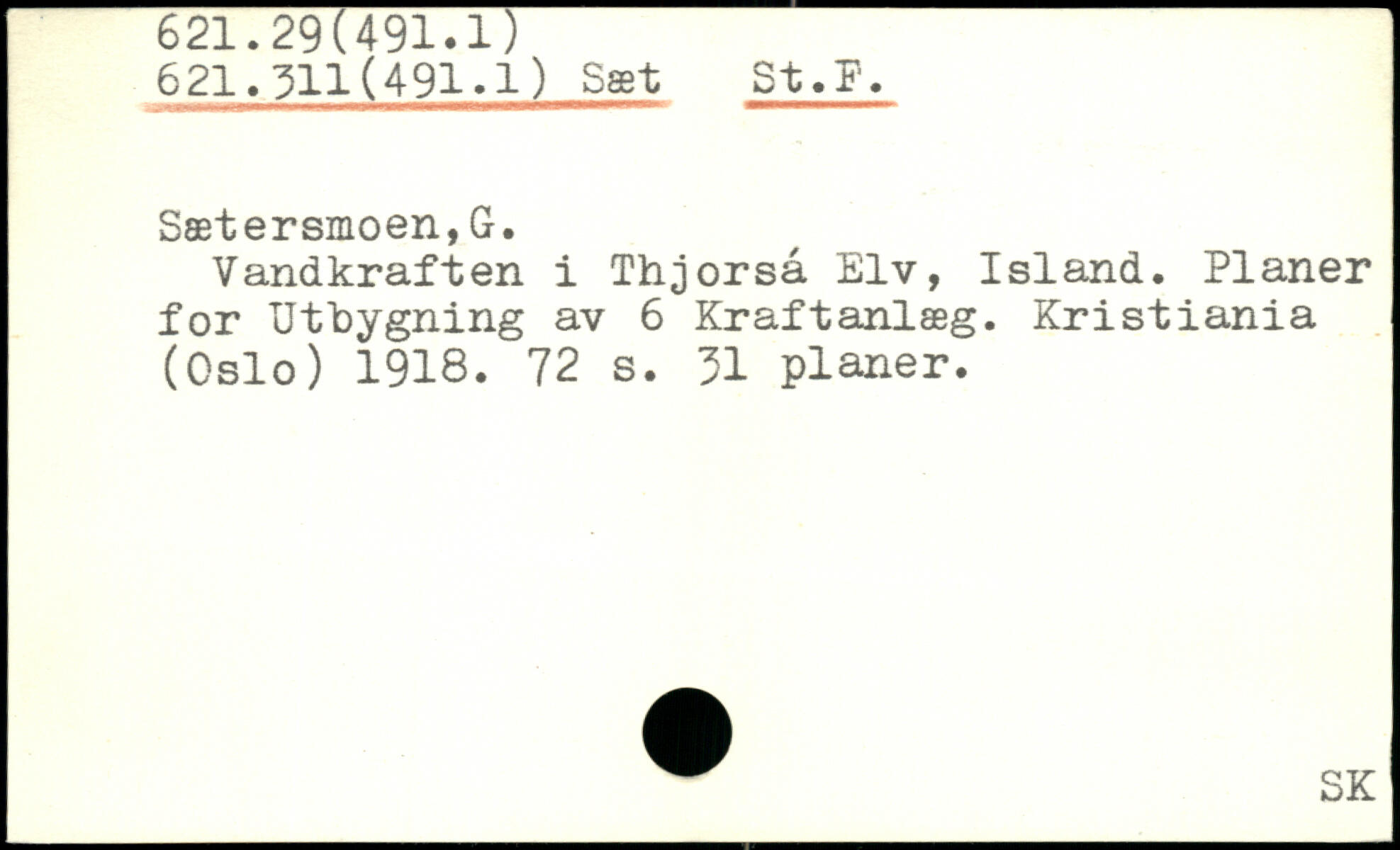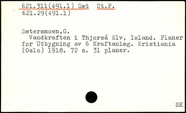 Vandkraften i Thjorså Elv, Island. Planer for Utbygning av 6 Kraftanlæg. Kristiania (Oslo) 1918.