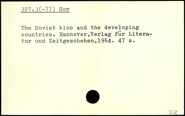 The Soviet bloc and the developing countries. Hannover,Verlag fur Literatur und Zeitgeschehen,1964.