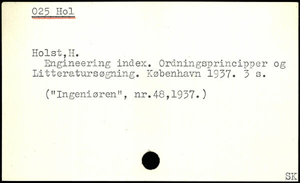 Engineering index. Ordningsprineipper og Litteratursøgning.