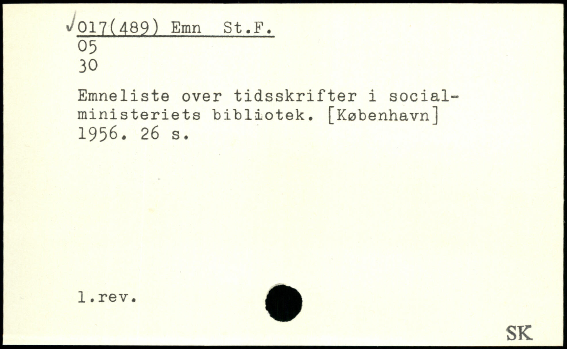 Emneliste over tidsskrifter i socialministeriets bibliotek.