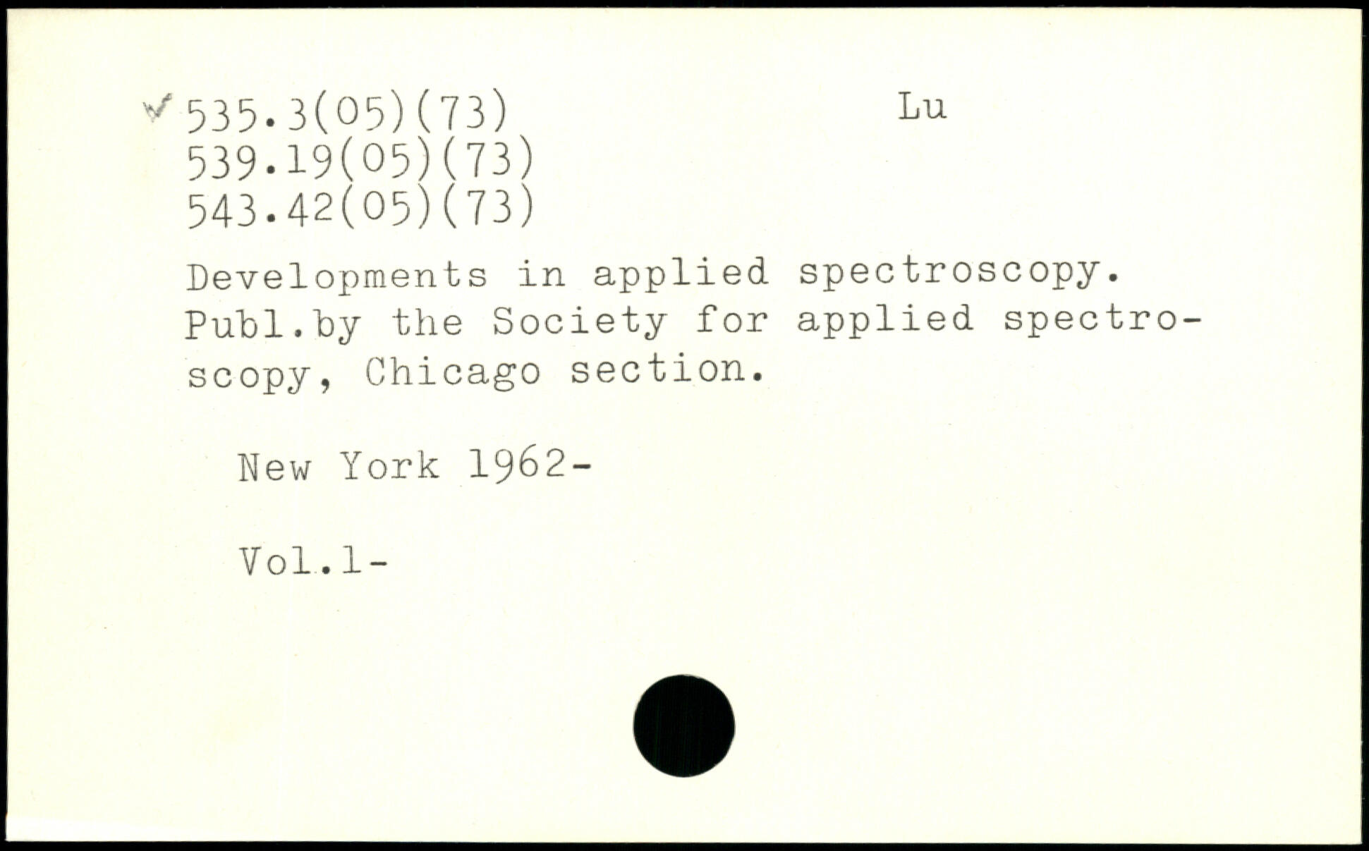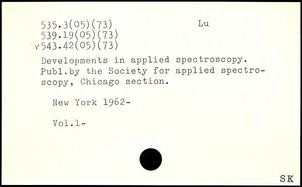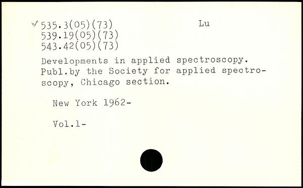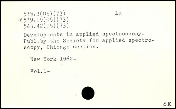 Developments in applied spectroscopy. Publ. "by the Society for applied spectroscopy, Chicago section.