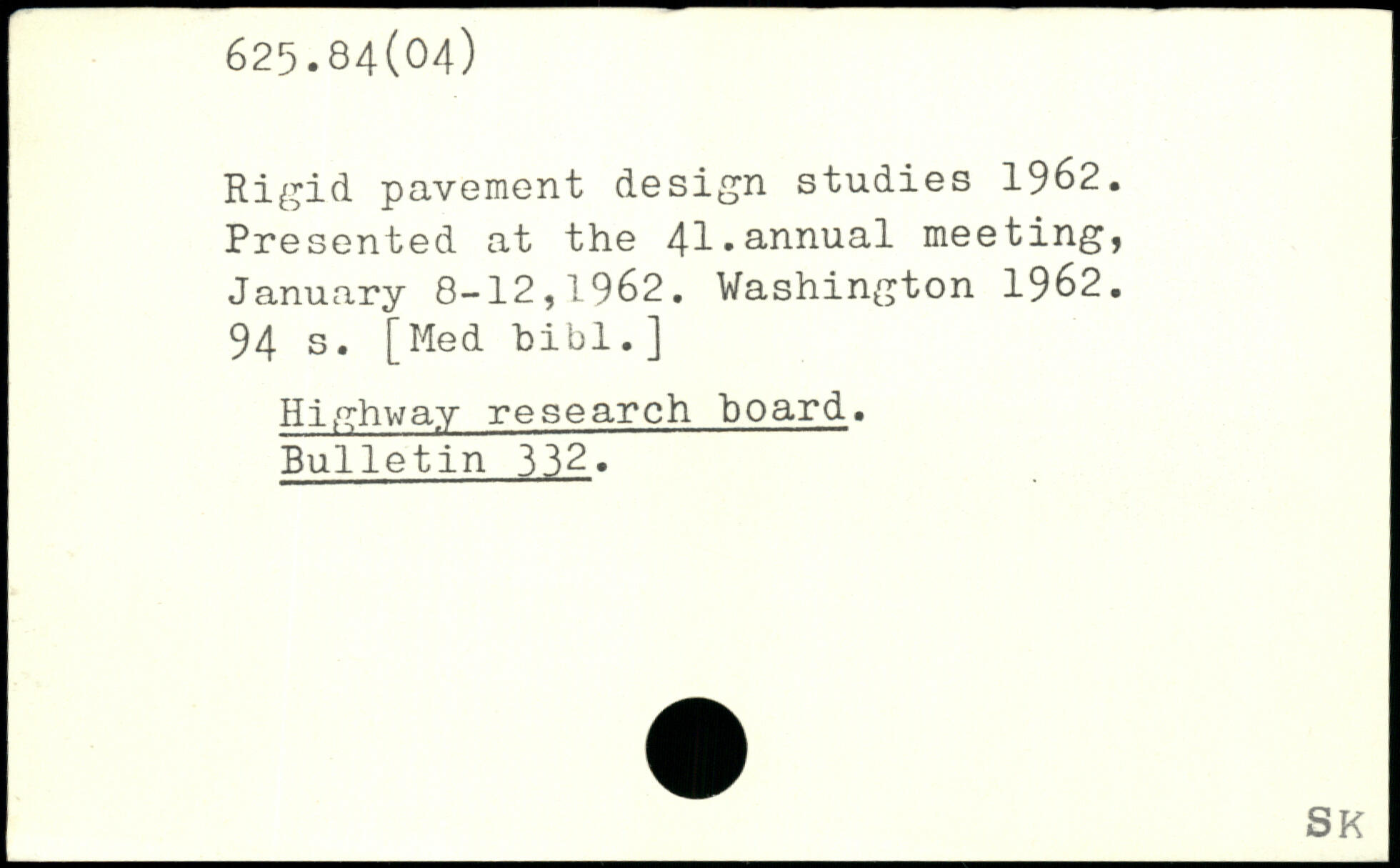 Rigid pavement design studies 1962. Presented at the 41.annua-l meeting, January 8-12,1962.