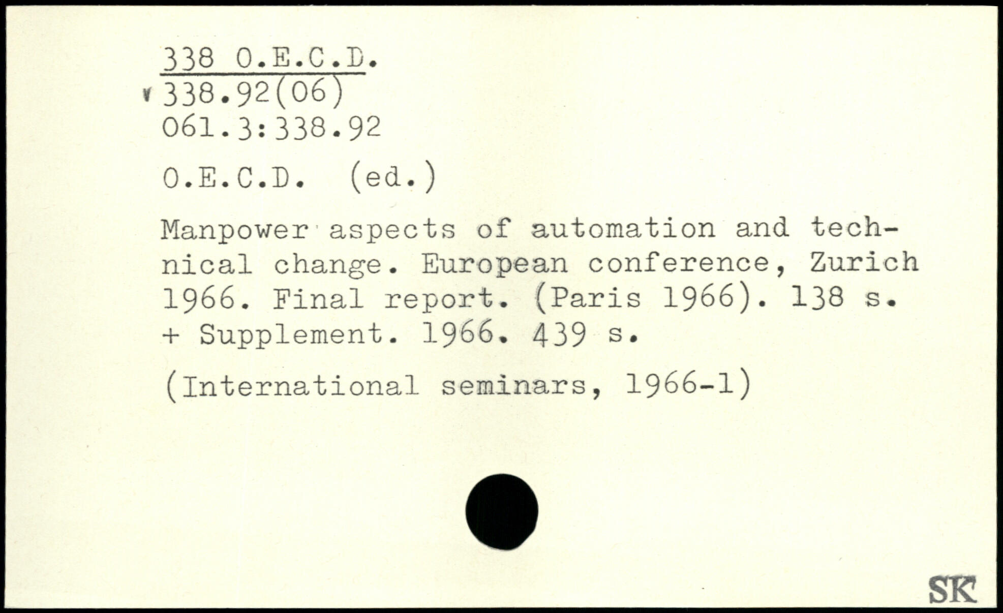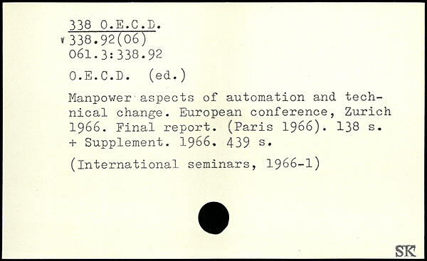 Manpower aspects of automation and technical change. European conference, Zurich 1966. Final report. (