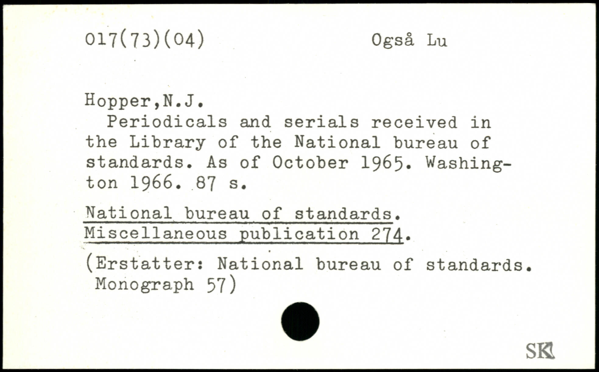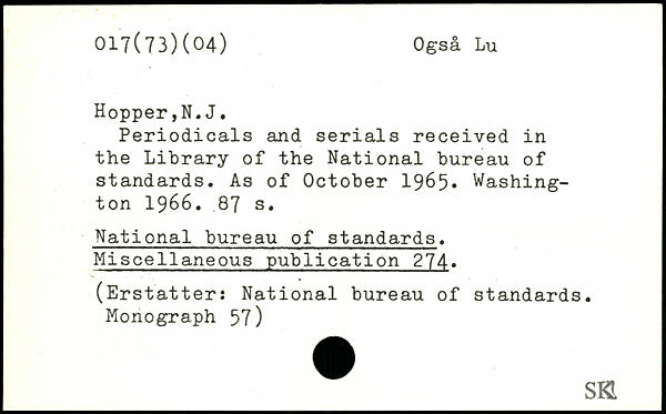 Periodicals and serials received in the Library of the National bureau of standards. As of October 1965.