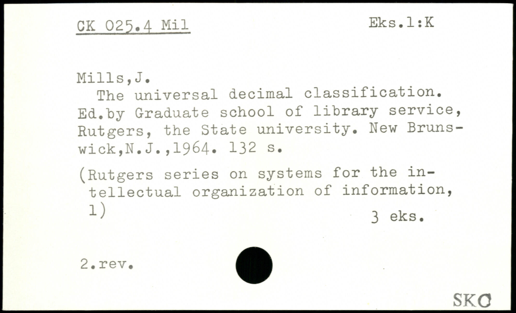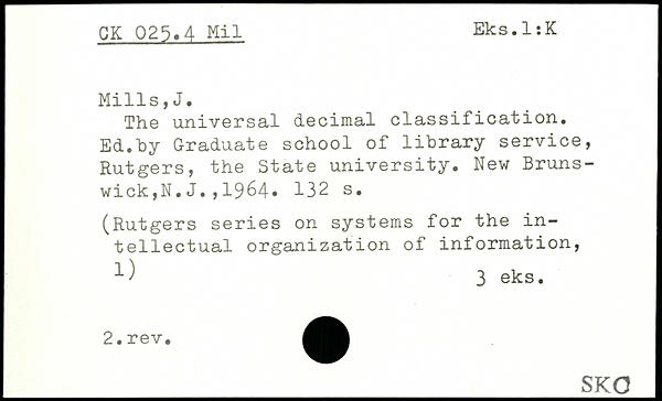 The universal decimal classification. Ed.by Graduate school of library service, Rutgers, the State university.