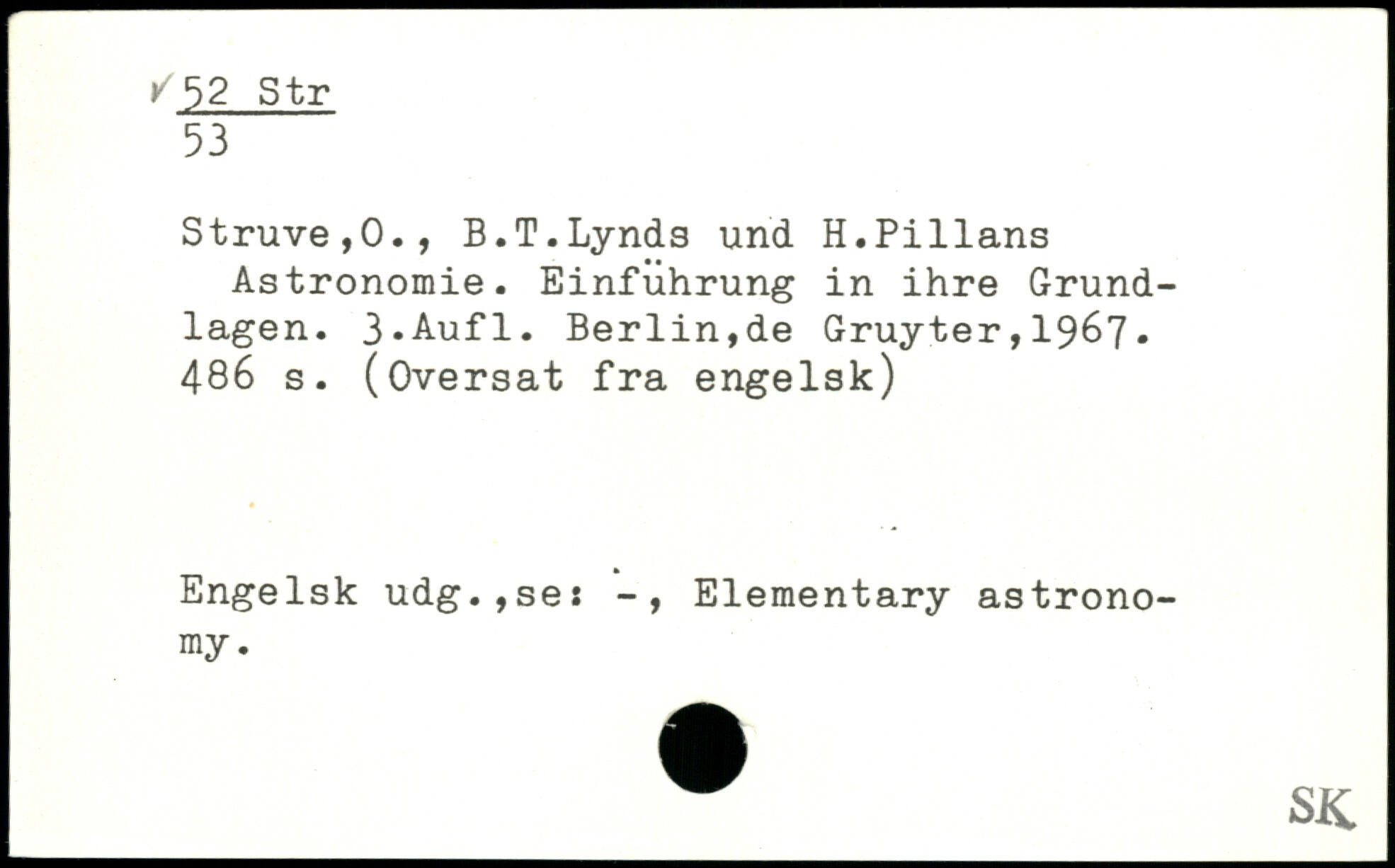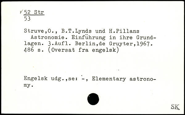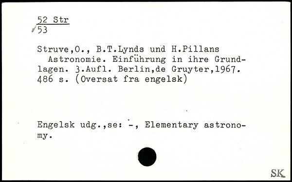 Struve,0., B.T.Lynds und H. Pi Hans Astronomie. Einführung in ihre Grundlagen.