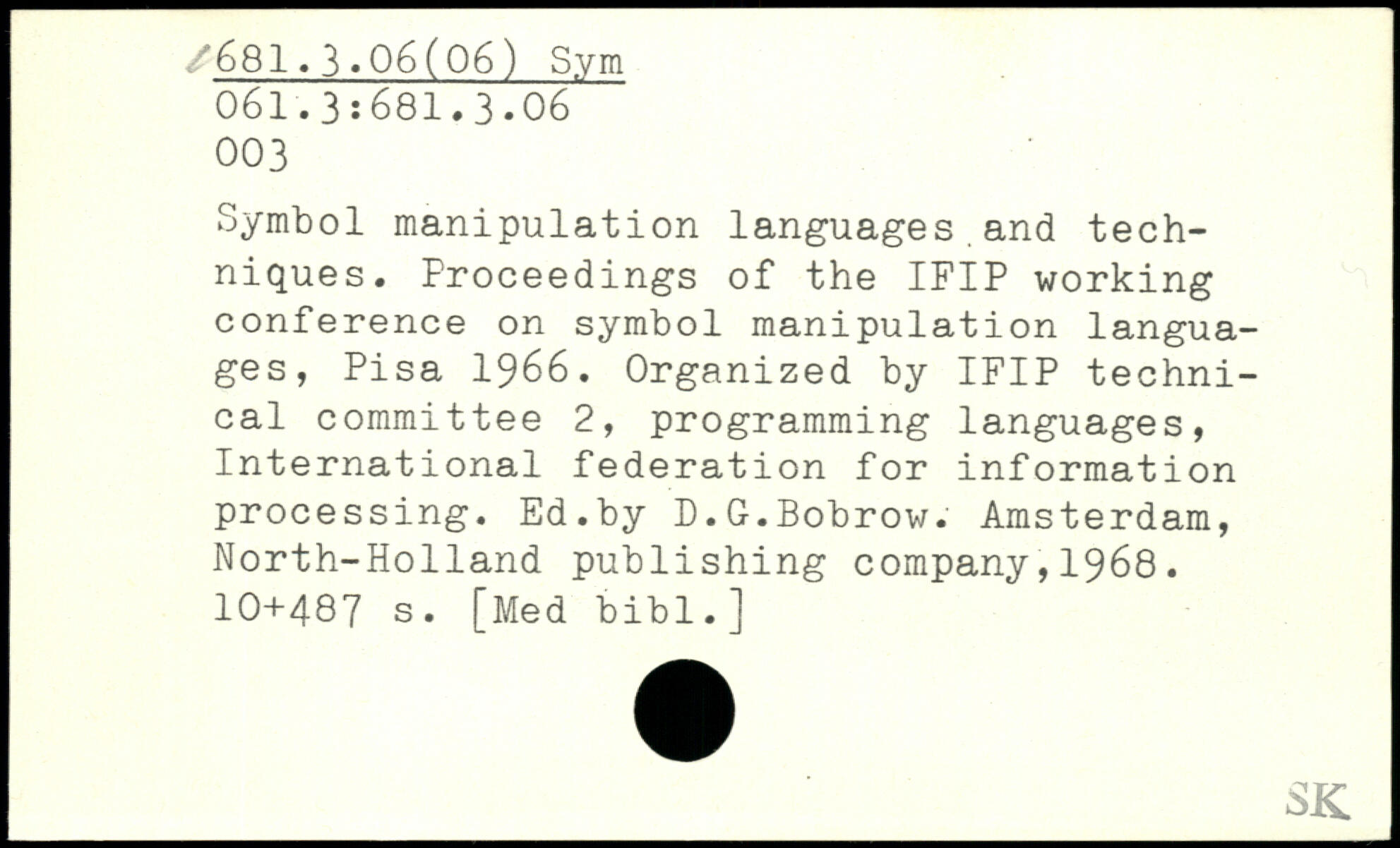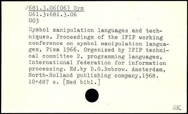 Symbol manipulation languages and techniques. Proceedings of the IFIP working conference on symbol manipulation languages