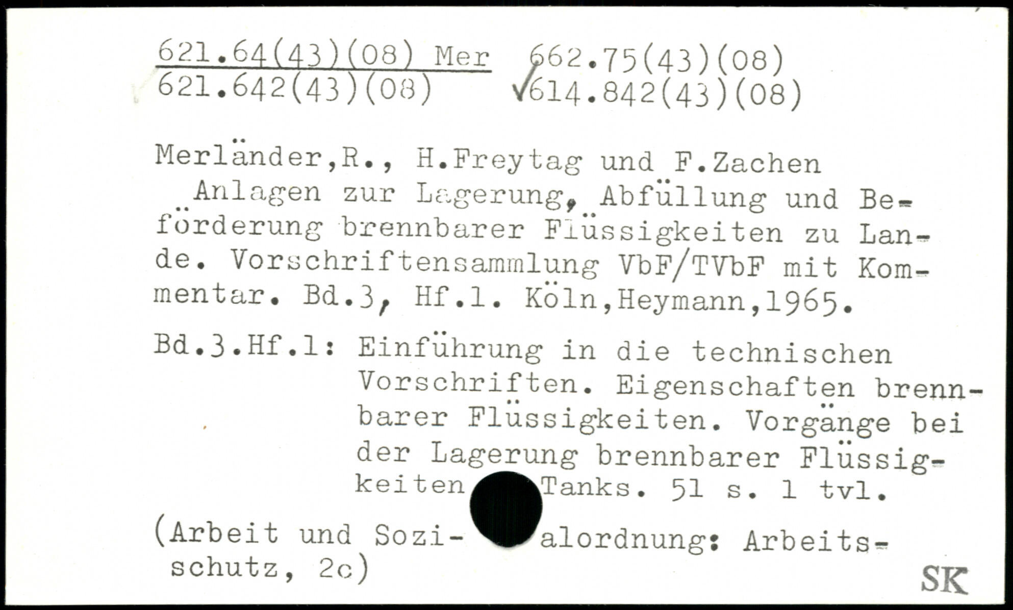 Merlander,R., H.Freytag und F.Zachen ..Anlagen zur Lagerung, ^Abfüllung und Beförderung brennbarer Fxüssigkeiten zu Lande. VorschriftenSammlung VbF/TVbF mit Kommentar.