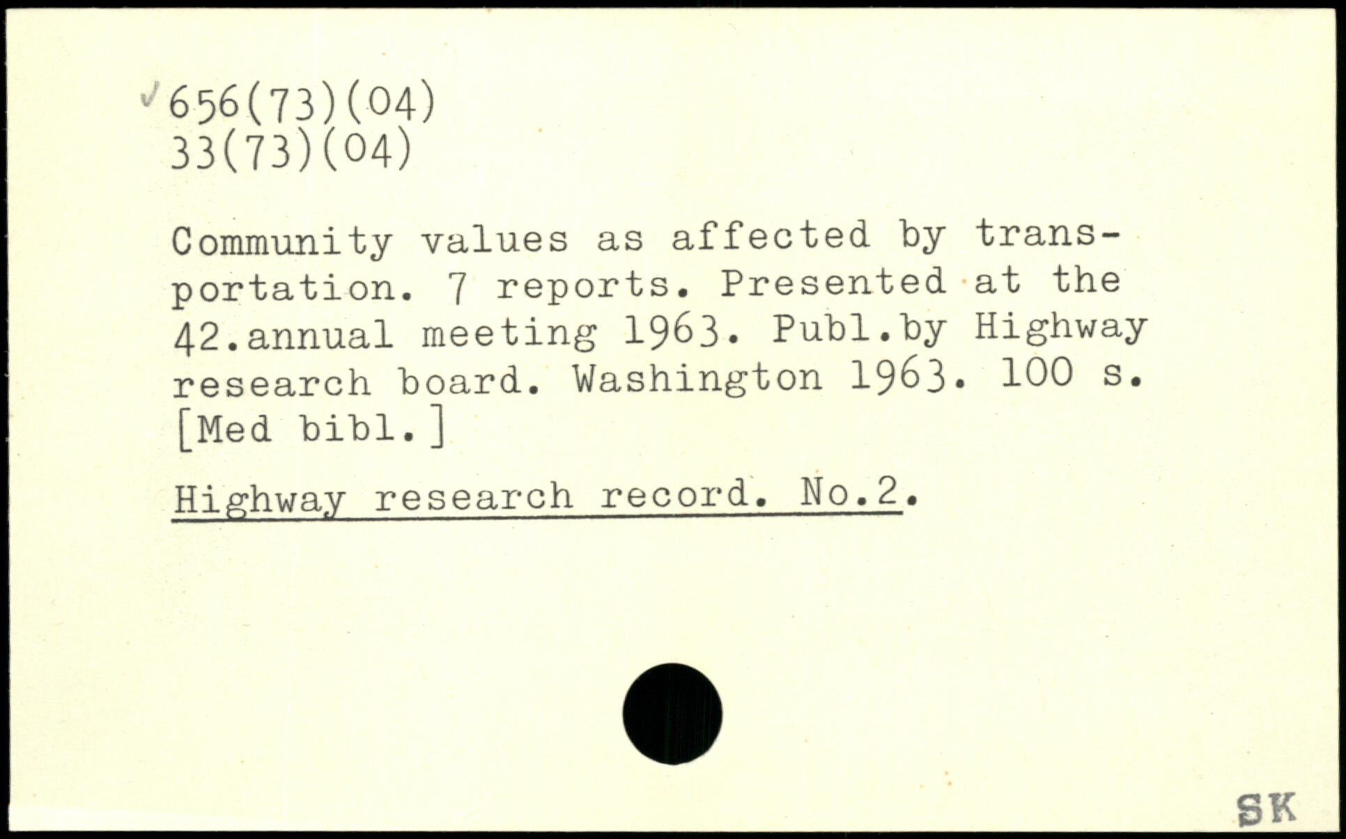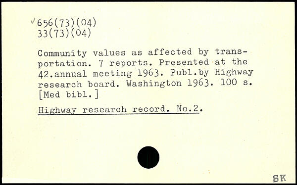 Community values as affected by transportation. 7 reports. Presented at the 42.annual meeting 1963.