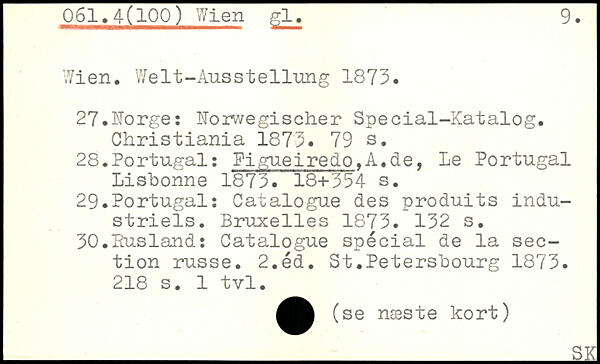 Wien. Welt-AusStellung 1873. 27. Borge: Norwegischer Special-Katalog. Christiania Ï873.