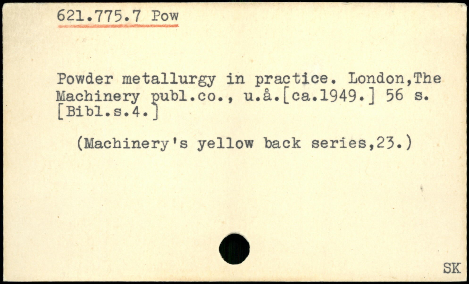 Powder metallurgy in practice. London,The Machinery publ.co., u.&.[ca.1949.]