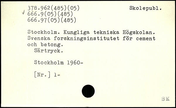 Stockholm. Kungliga tekniska Högskolan. Svenska forskningsinstitutet för cement och betong. Särtryck.