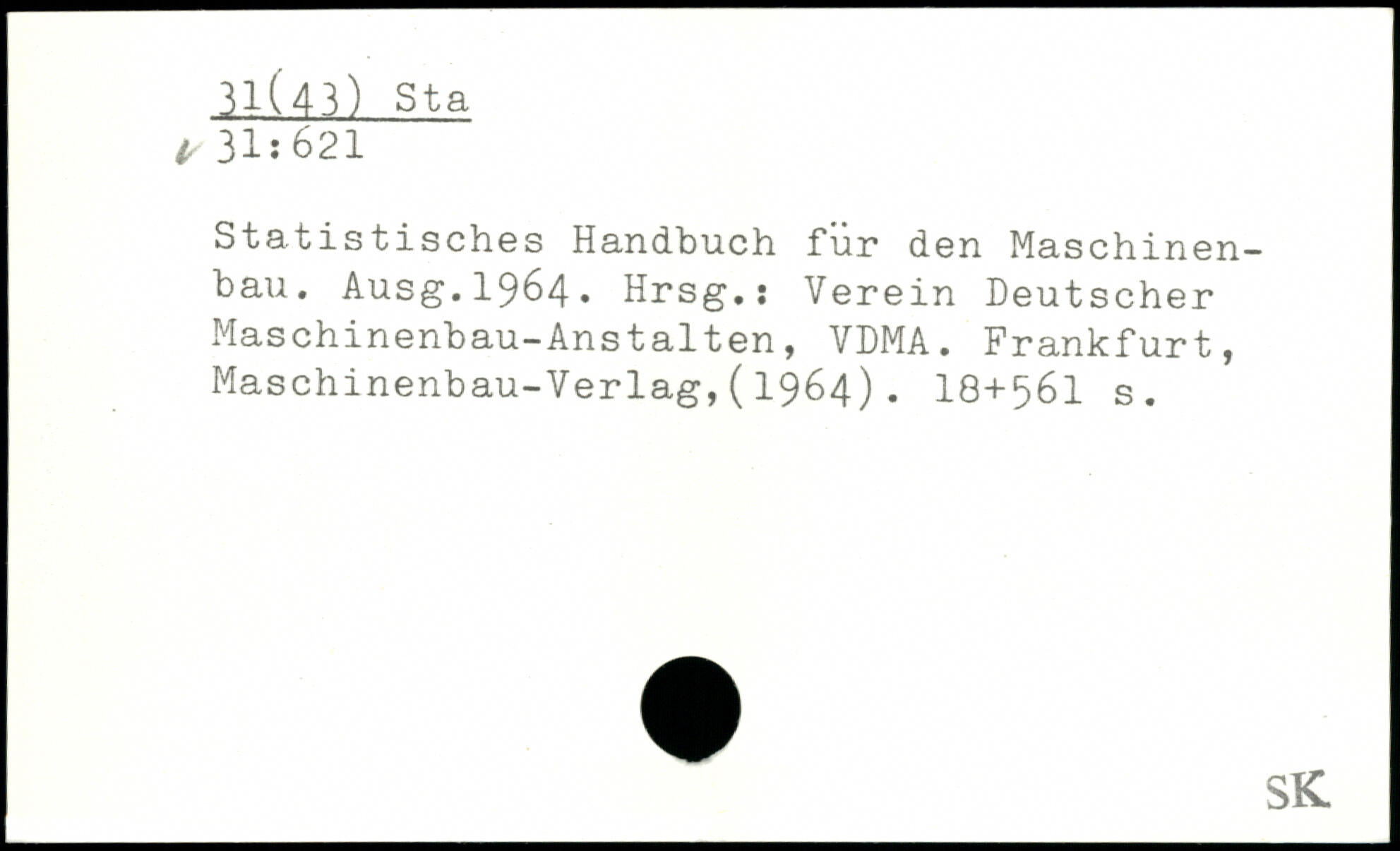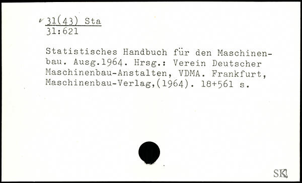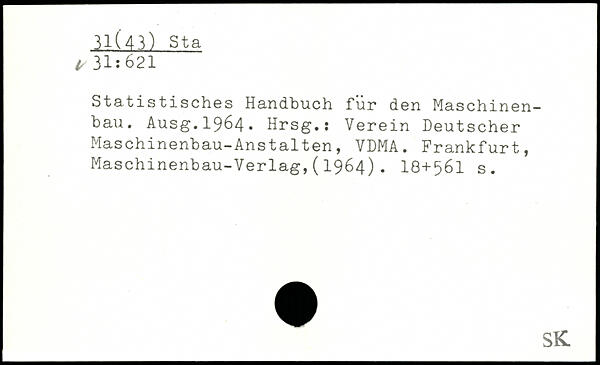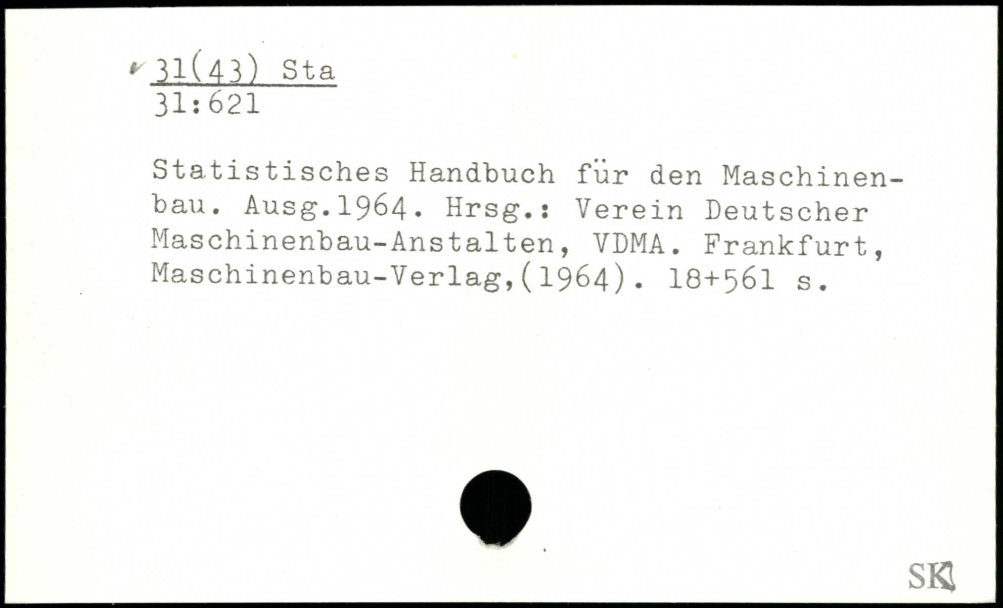 Statistisches Handbuch für den Maschinenbau. Ausg.1964. Hrsg.: Verein Deutscher Maschinenbau-Anstalten, VDMA. Frankfurt, Maschinenbau-Verlag,(1964). I8+56I s. _SKI