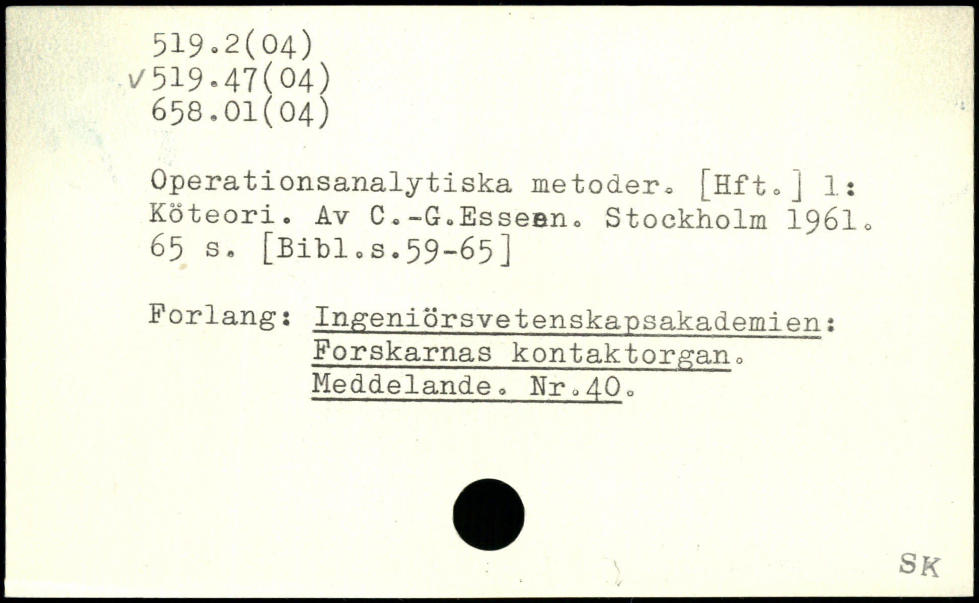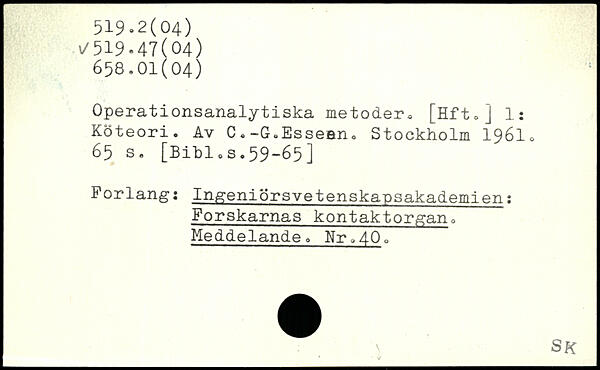 Operationsanalytiska metoder, [Hft.] Is Köteori. Av C.-G.Esseeno