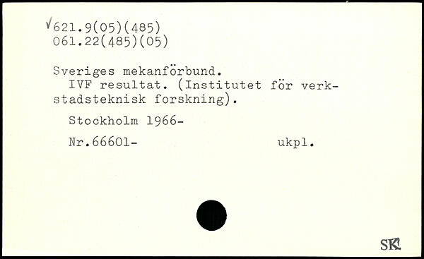 Sveriges mekanforbund. IVF resultat, (institutet för verk-stadsteknisk forskning).