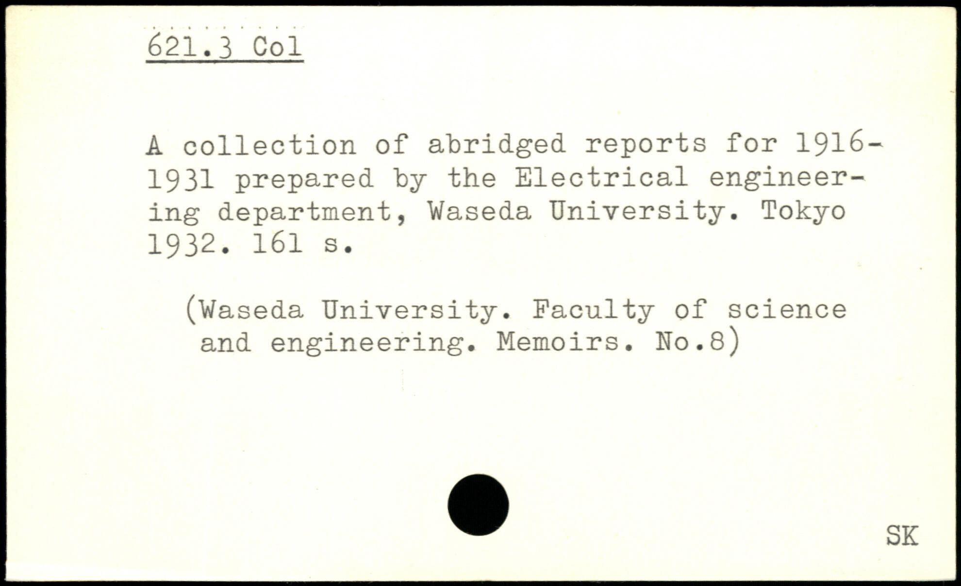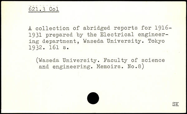 A collection of abridged, reports for 1916-1931 prepared by the Electrical engineering department, Waseda University.