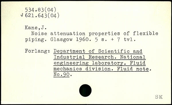 Noise attenuation properties of flexible piping, Glasgow 1960.