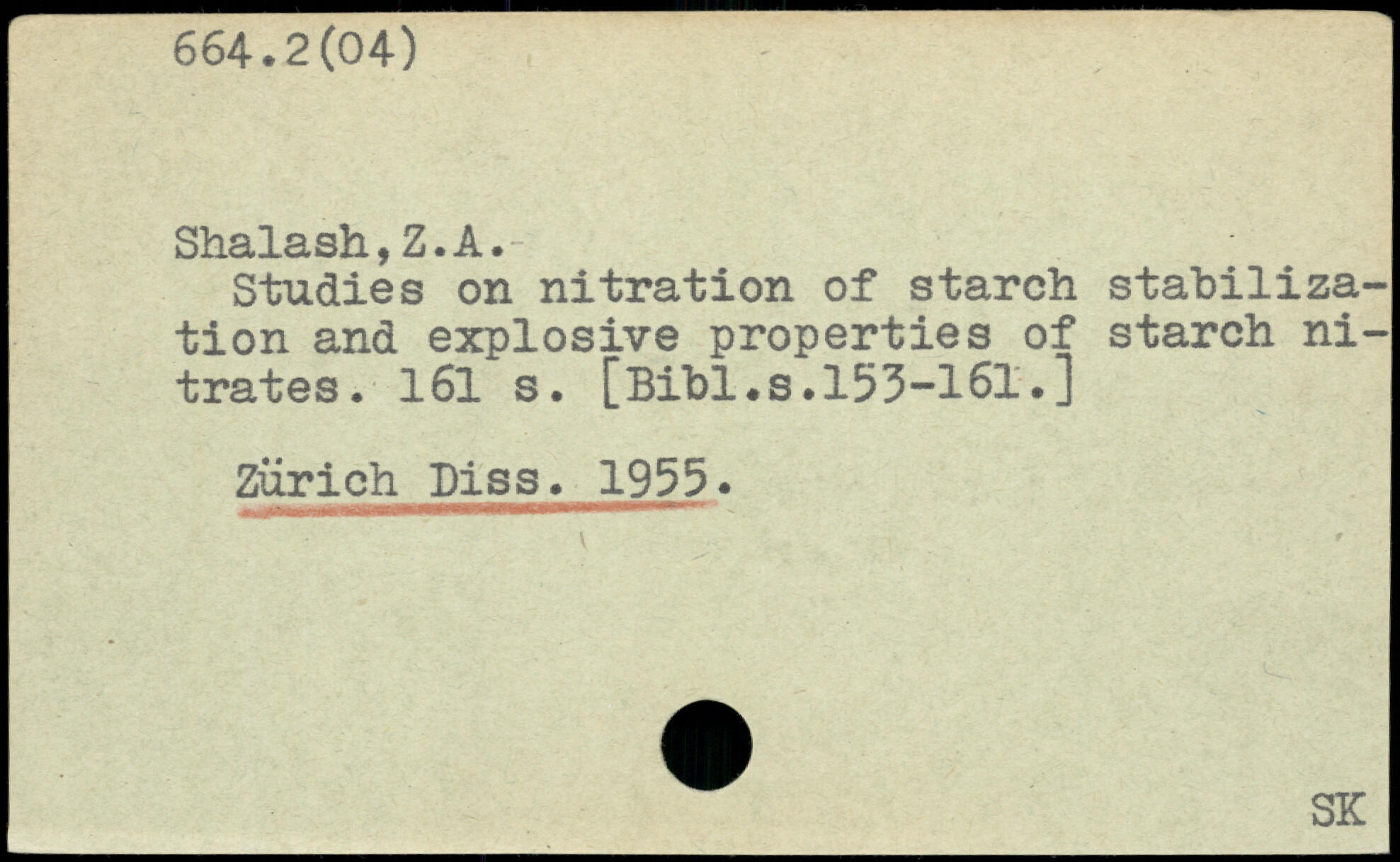 Studies on nitration of starch stabilization and explosive properties of starch nitrates.