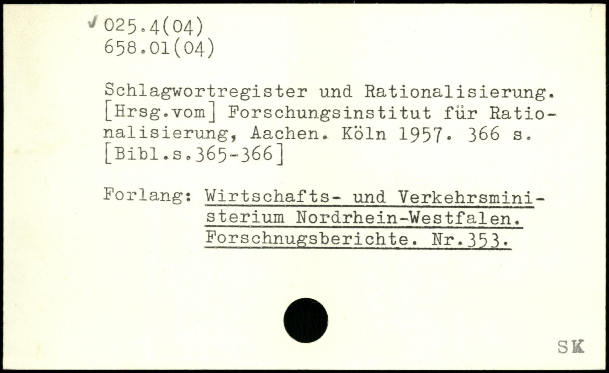 Schlagwortregister und Rationalisierung. [Hrsg.vom] Forschungsinstitut für Rationalisierung, Aachen.