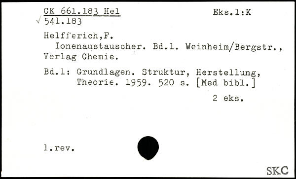 Ionenaustauscher. Bd.l. Weinheim/Bergstr. , Verlag Chemie. Bd.l: Grundlagen. Struktur, Herstellung, Theorie. 1959-