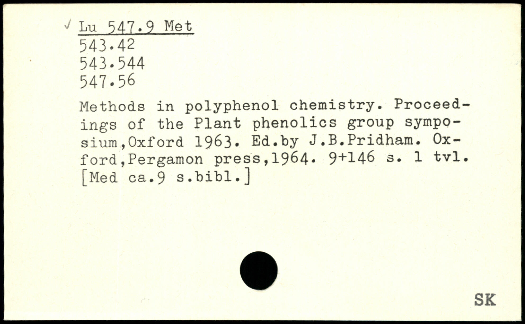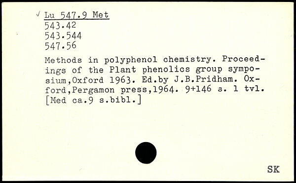 Methods in polyphenol chemistry. Proceed- ! ings of the Plant phenolics group symposium