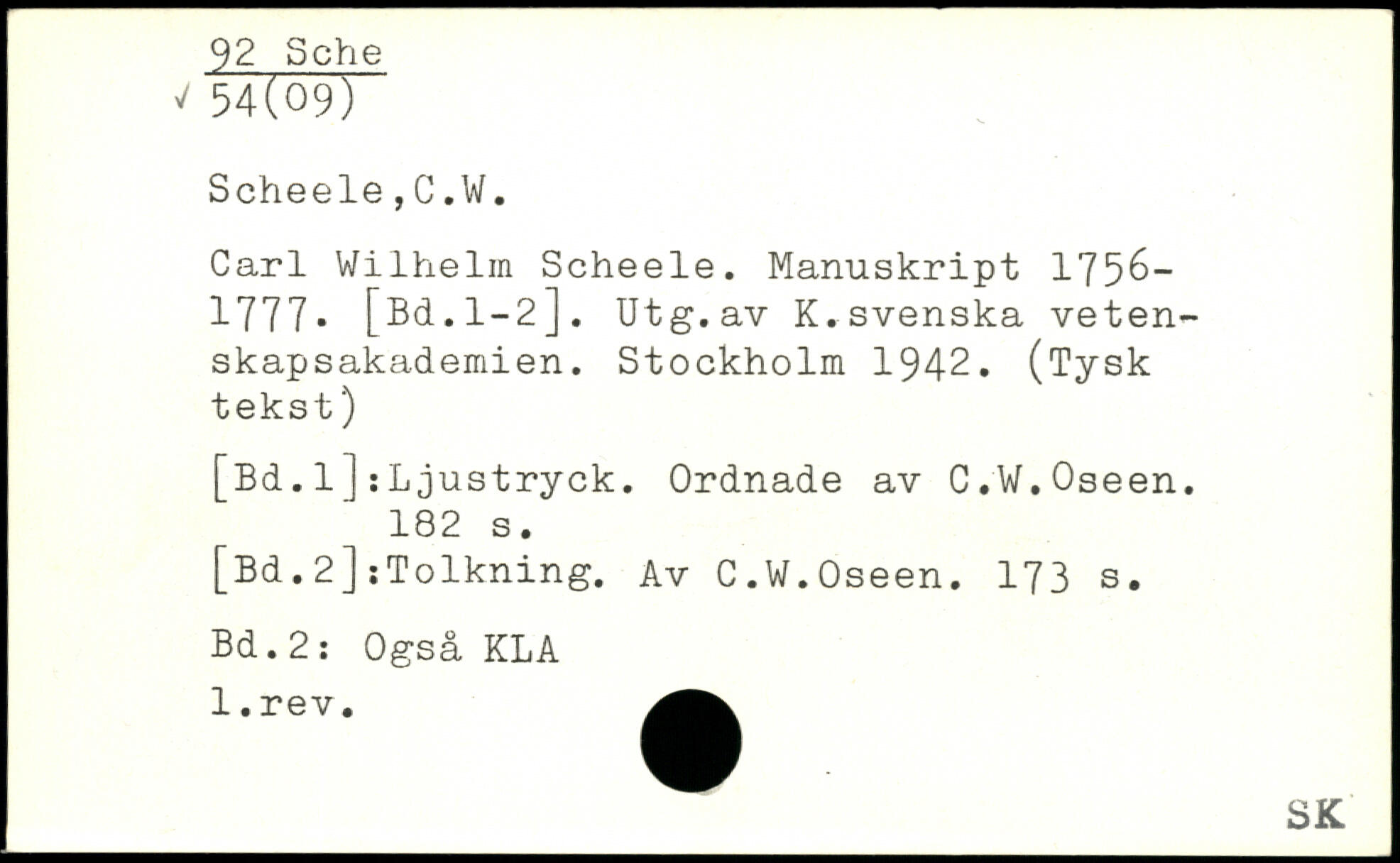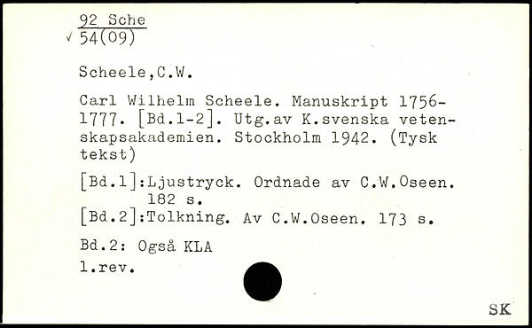 Carl Wilhelm Scheele. Manuskript 1756-1777. [