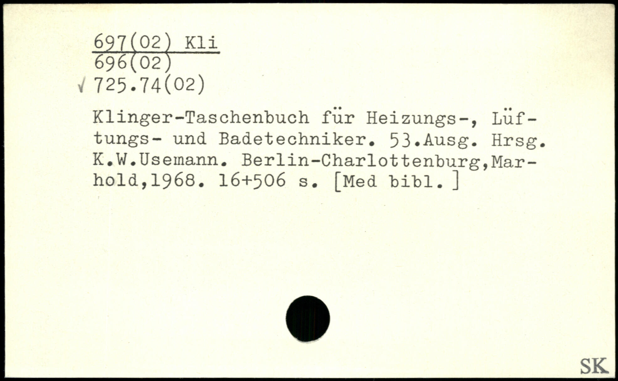 Klinger-Taschenbuch für Heizungs-, LÜf-tungs- und Badetechniker. 53.Ausg. Hrsg. K.W.Useinann.