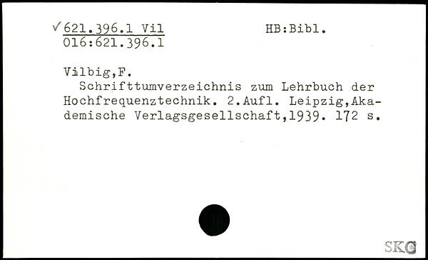 Schrifttumverzeichnis zum Lehrbuch der Hochfrequenztechnik.
