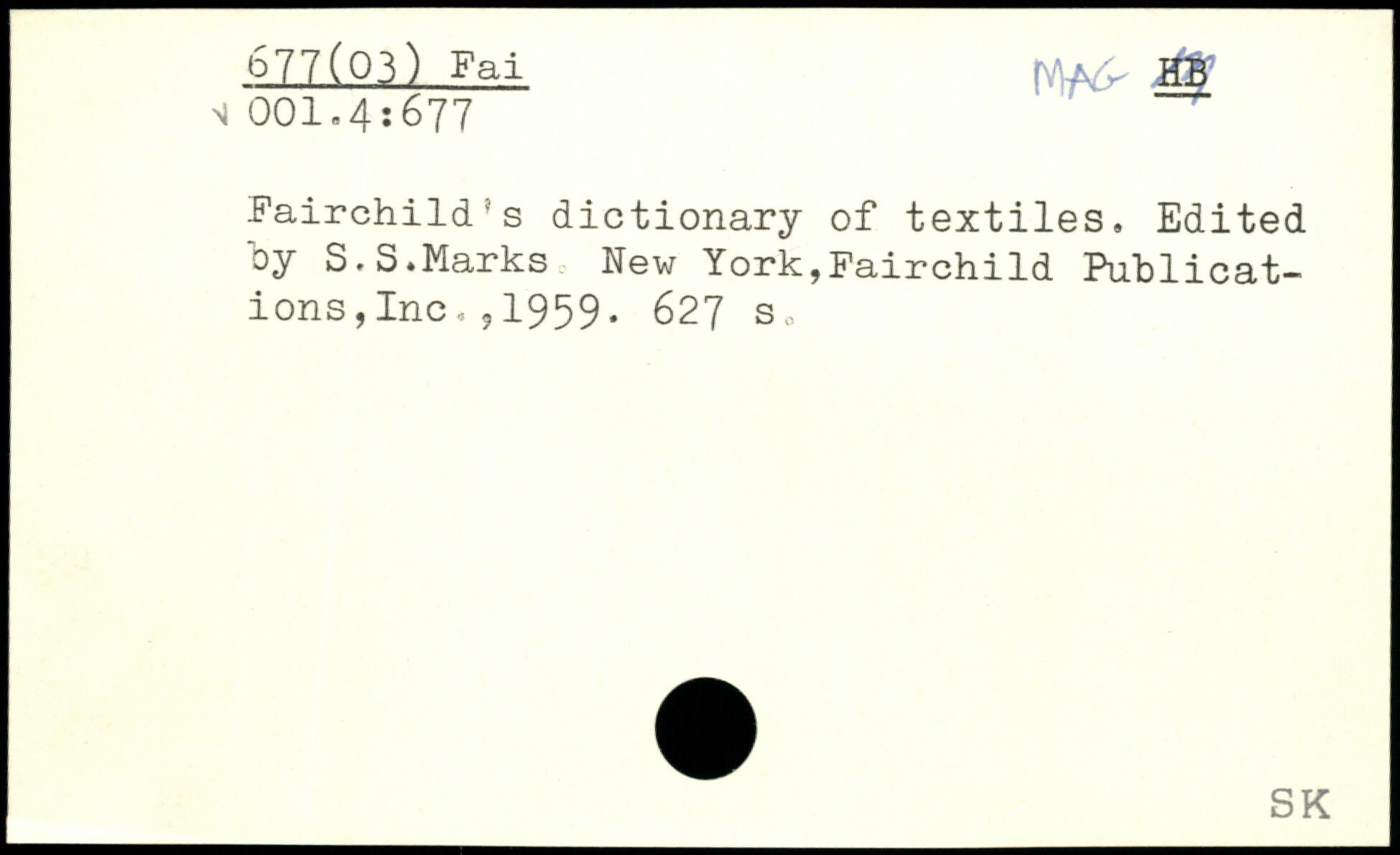 Fairchild's dictionary of textiles. Edited oy S.S.Marks New York,Fairchild Publications , Inc ,, 1959.