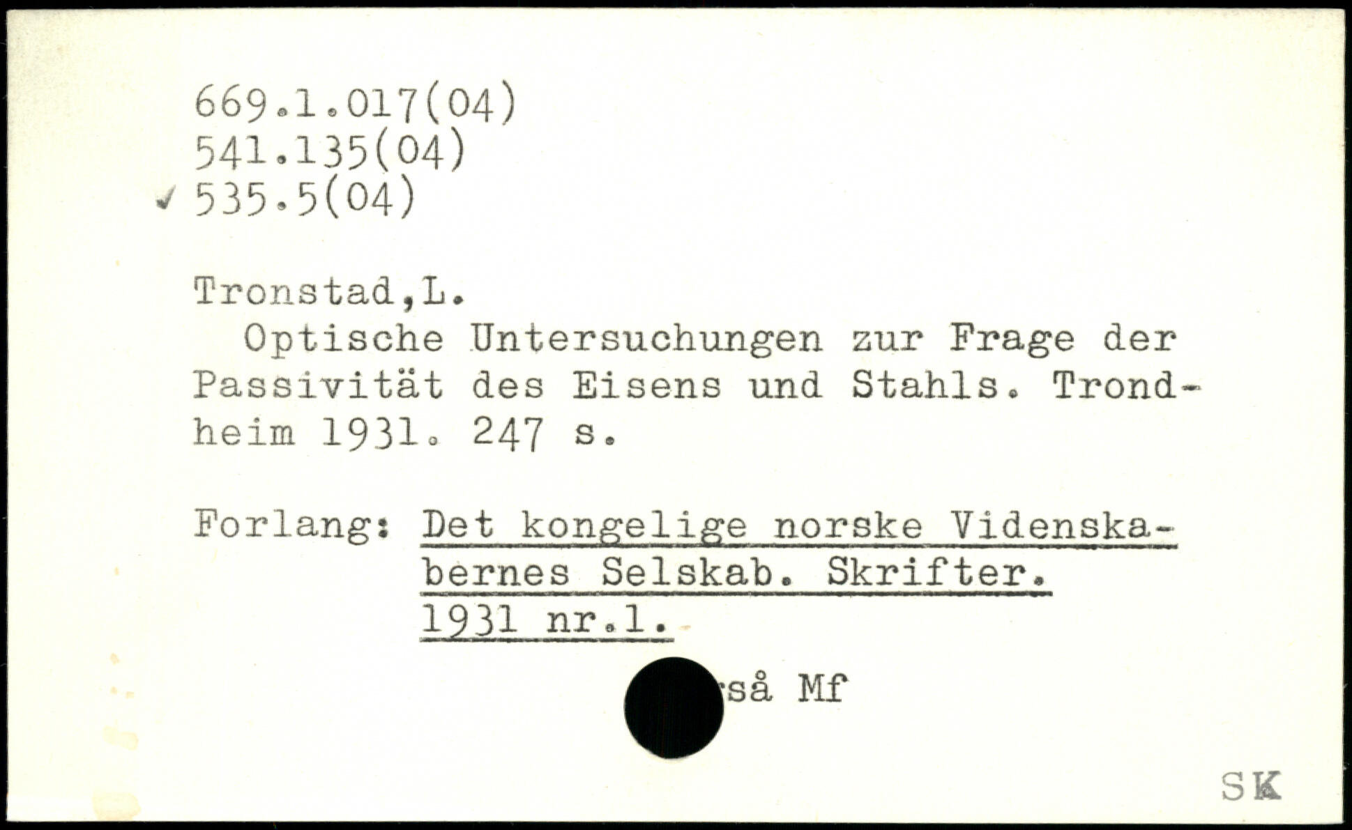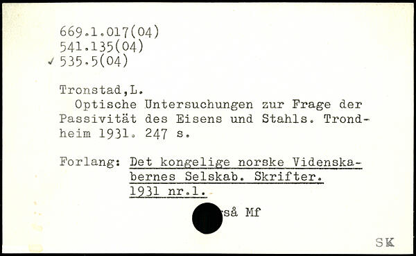 Optische Untersuchungen zur Frage der Passivität des Eisens und Stahls. Trond- heim 1931-
