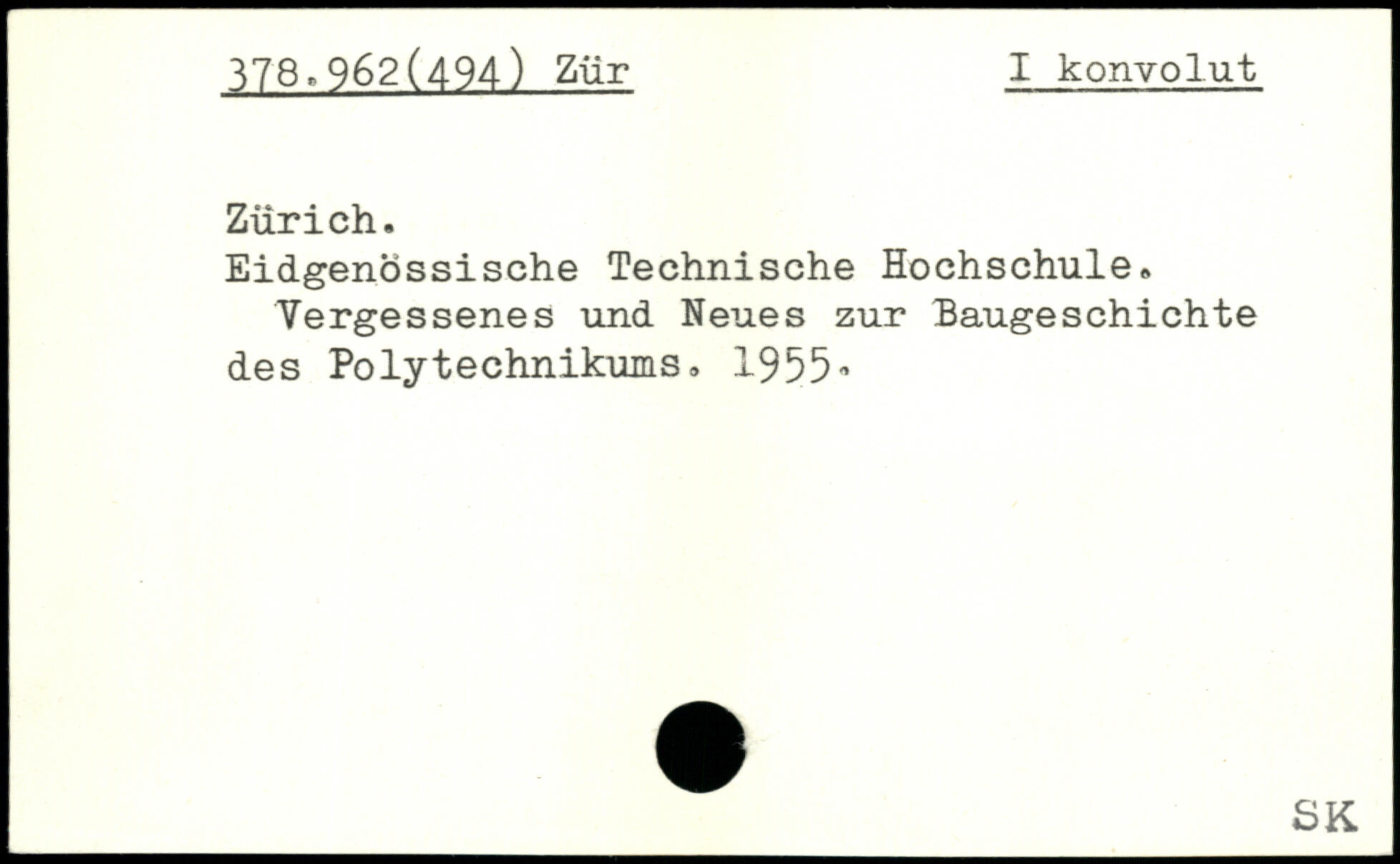 Eidgenössische Technische Hochschule. Vergessenes und Neues zur Baugeschichte des Polytechnikums. 1955-