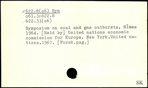 Symposium on coal and gas outbursts, Nimes 1964. [Held by] United nations economic commission for Europe.