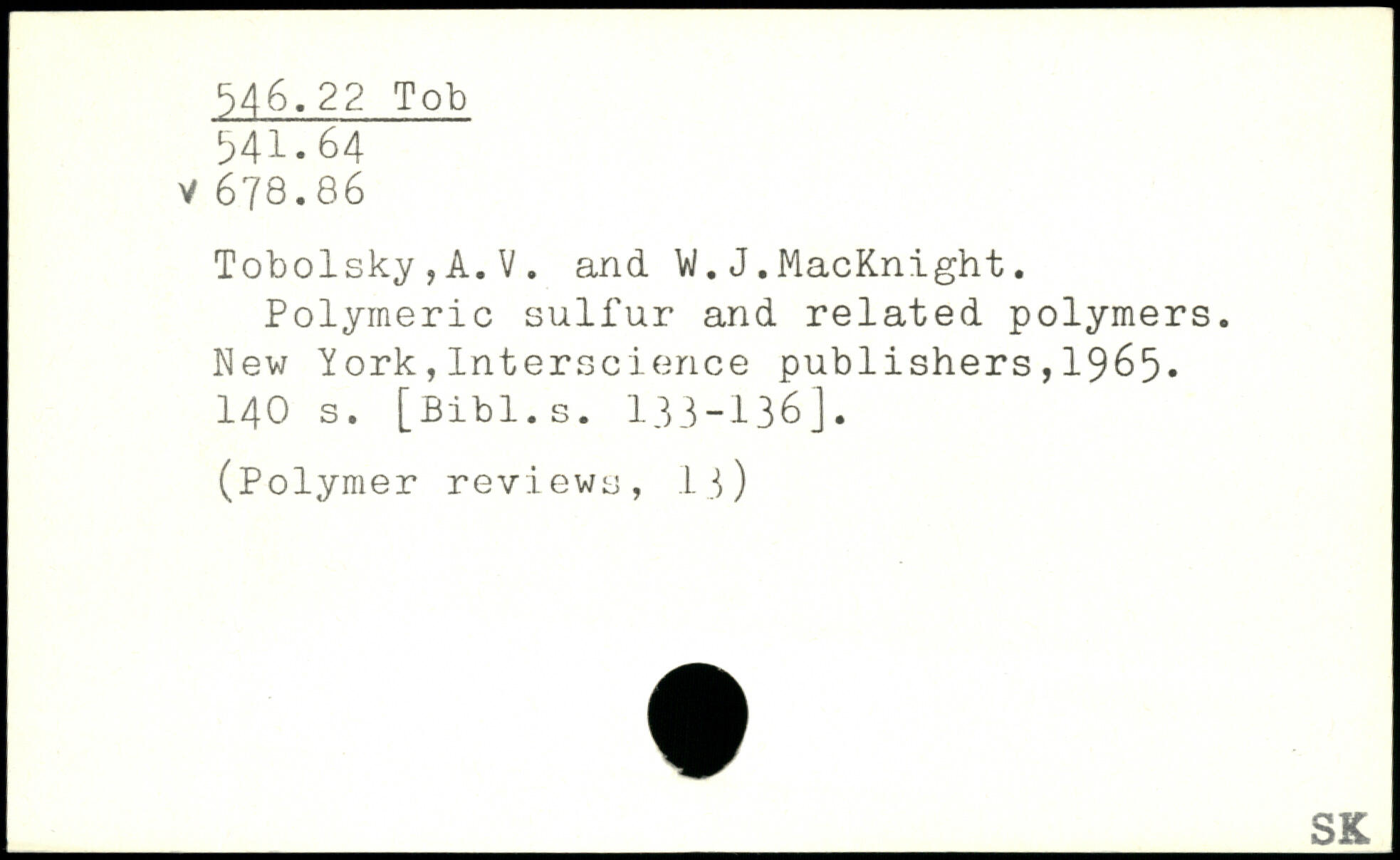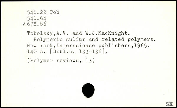 Tobolsky,A.V. and VI. J.MacKnight. Polymerie sulfur and related polymers.