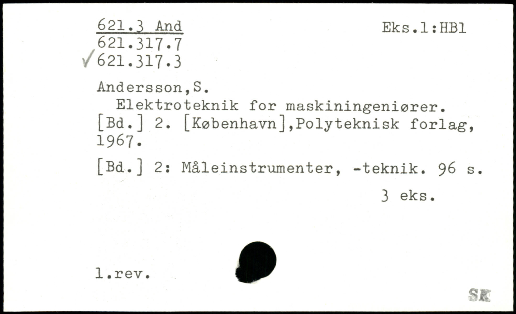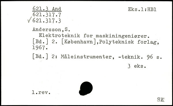 Elektroteknik for maskiningeniører. [Bd.] 2. [København],Polyteknisk forlag, 1967. [Bd.] 2: Måleinstrumenter, -teknik.