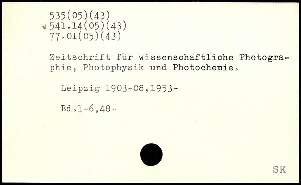 Zeitschrift für wissenschaftliche Photographie, Photophysik und Photochemie.