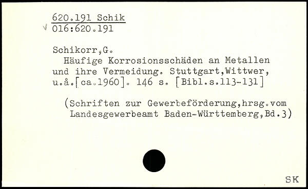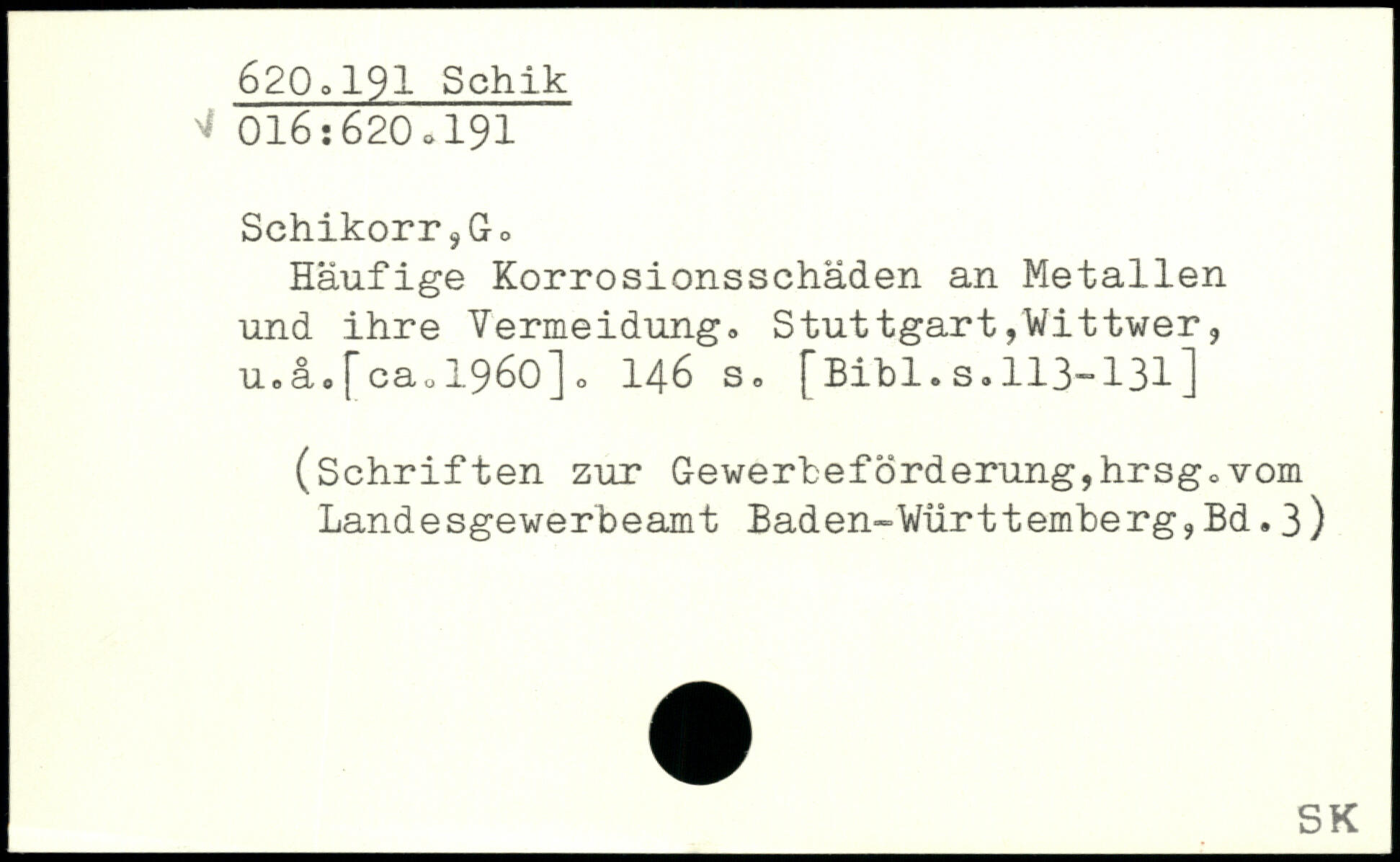 Häufige Korrosionsschäden an Metallen und ihre Vermeidung. Stuttgart,Wittwer, u.ä,[ca,1960]o