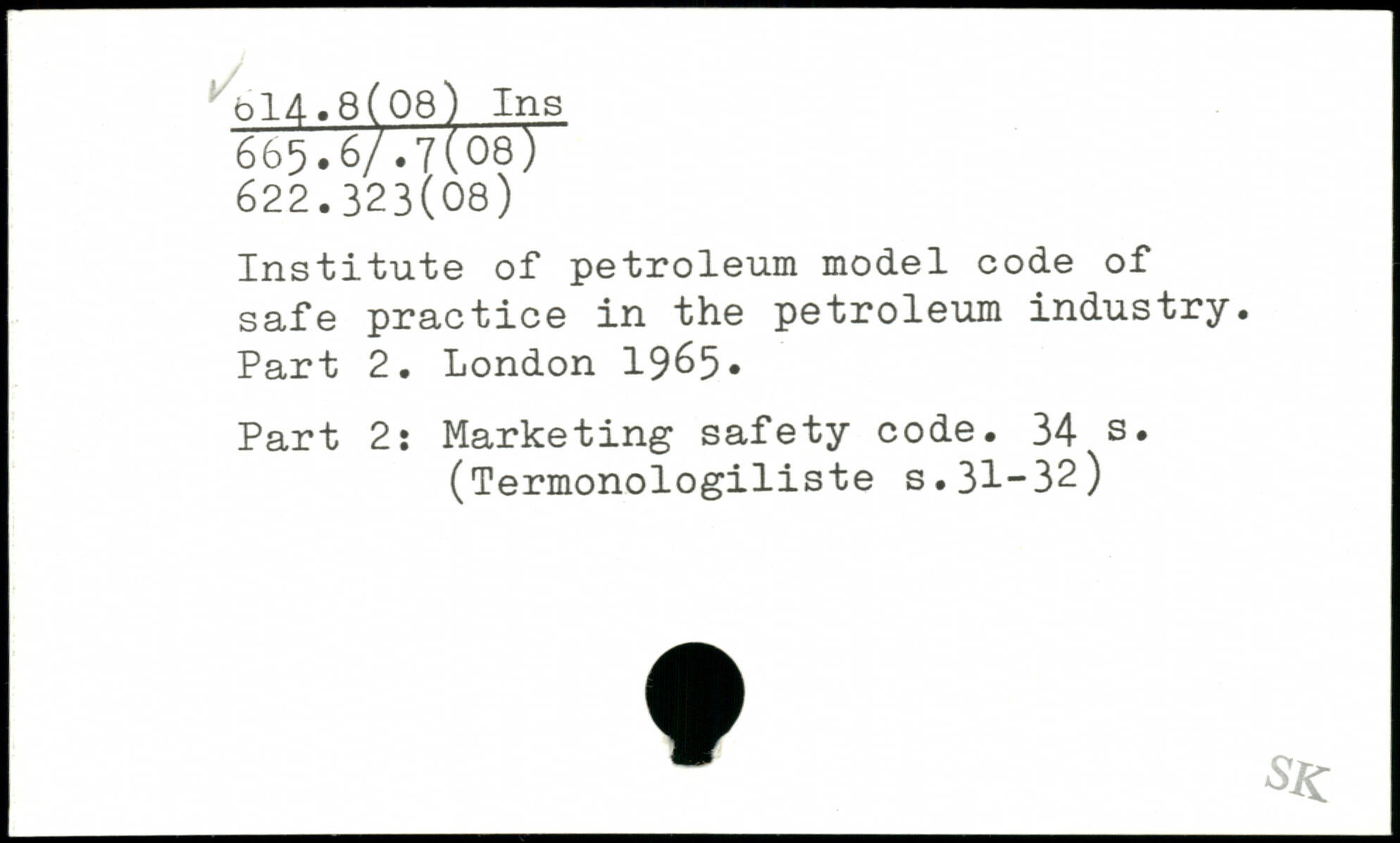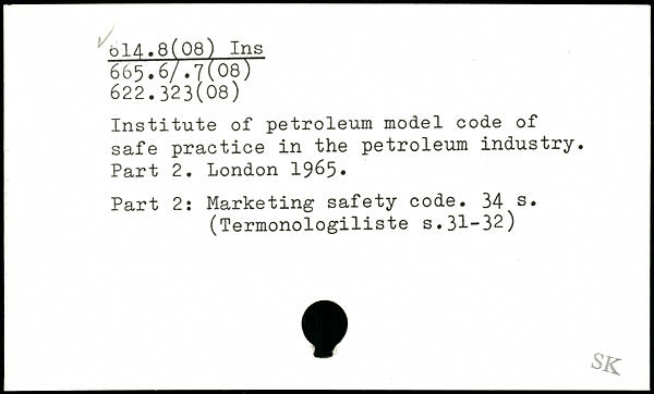 Institute of petroleum model code of safe practice in the petroleum industry. Part 2. London 19&5. Part 2: Marketing safety code.