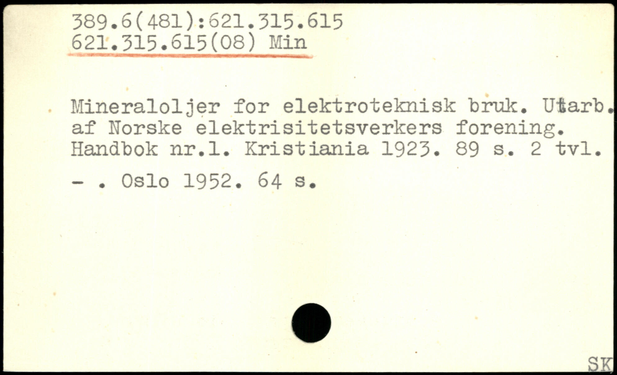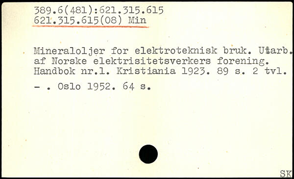 . Mineralöljer for elektroteknisk bruk. Utarb. af Norske elektrisitetsverkers forening. Handbok nr.l. Kristiania 1923.
